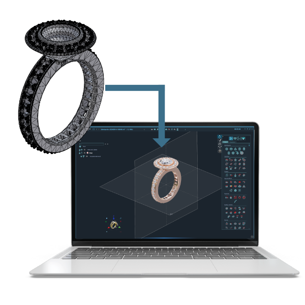 Continuación del Módulo 1. Profundiza en técnicas avanzadas de modelado 3D para joyería: anillos con gemas, diseños orgánicos tipo hélice, filigranas, coronas, anillos de graduación y modelado SubD. Aprende preparación profesional para impresión 3D y estándares de producción.